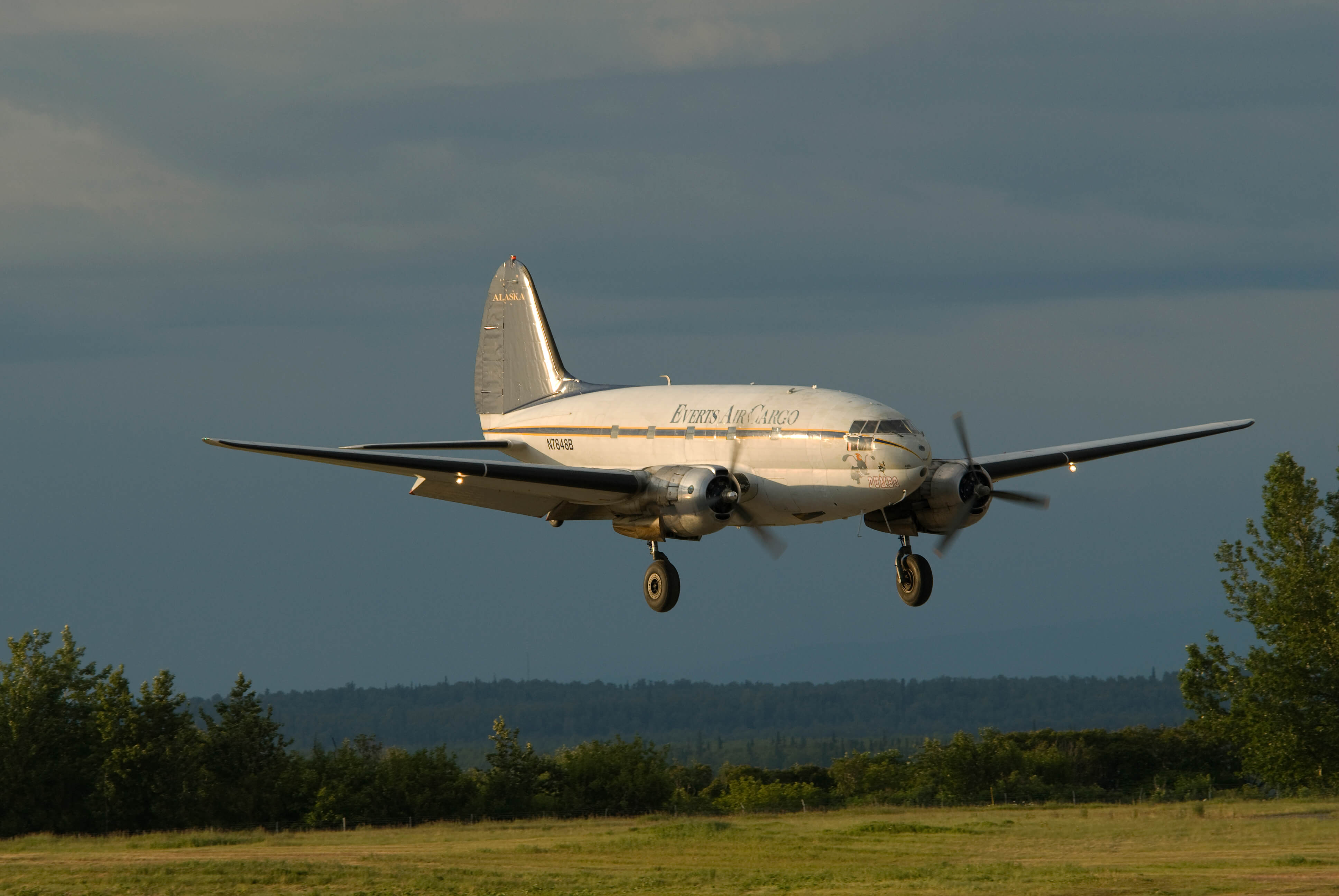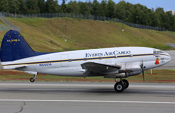 Everts Air Cargo's involvement started with the Everts' patriarch, Cliff Everts. Cliff had an affair with the plane almost from its first flight. He owned a number of them over the years and owned Everts Air Cargo's plane before selling it to Rob Everts. N54514 first flew for the U.S.A.A.F. in February of 1945 and flew for them for approximately 10 years when it was transferred to the Japanese self defense force. They flew the plane for another 20 years and then parked it at Miho Air Base, Yonago, Japan. Shortly thereafter, it was bought by Cliff Everts and flown to Alaska to sit for another period. Cliff's son Robert then purchased it and rebuilt it for operation by Everts Air Cargo. Once 514's rebuild was completed, she went to work again. For an old gal, she has very few hours and enjoys the pampering of being operated by people who appreciate her capabilities and needs.
